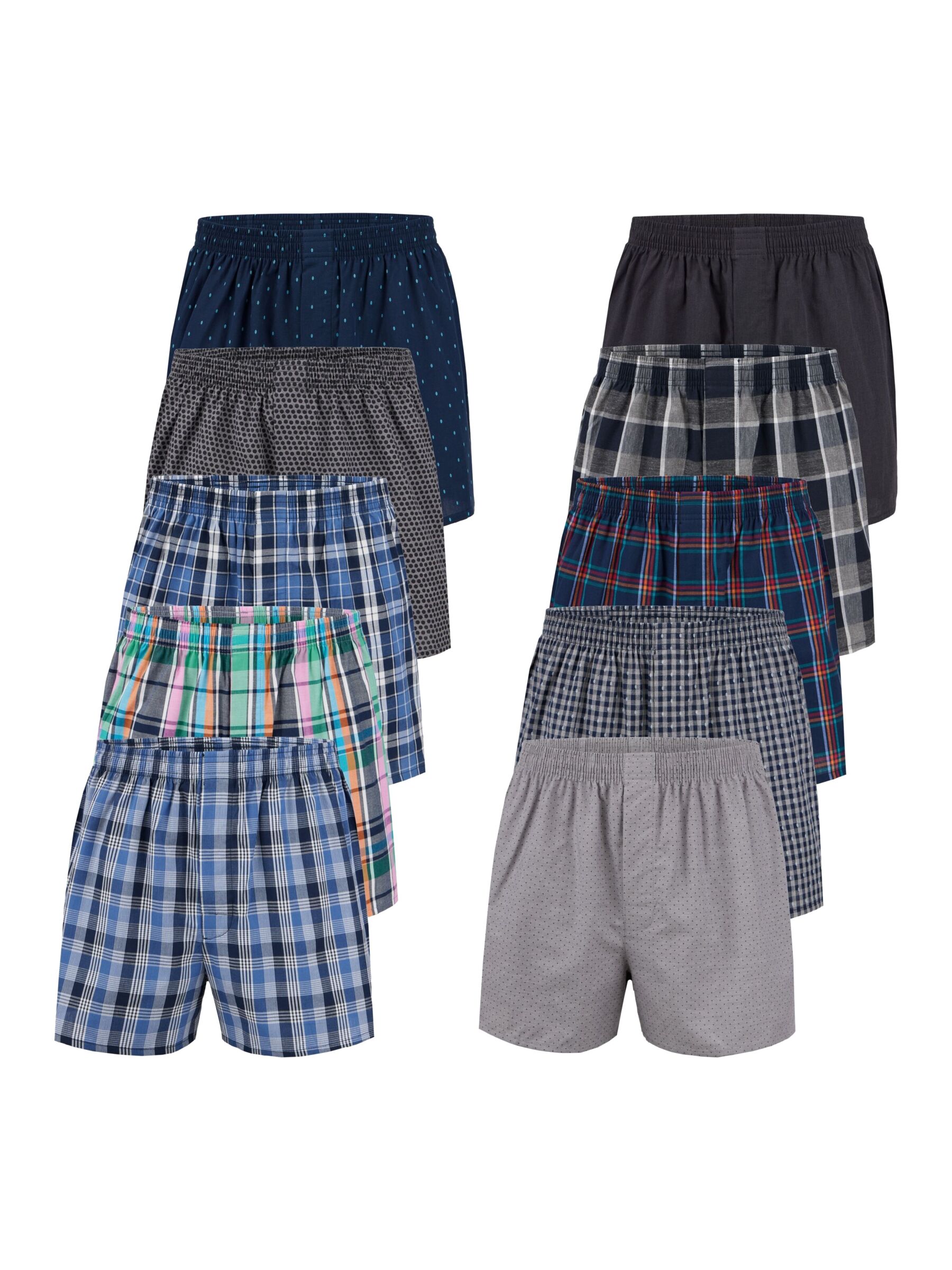 Wir bieten Ihnen eine Auswahl von 10 hochwertigen Boxershorts in vielen verschiedenen Farben und Mustern an.